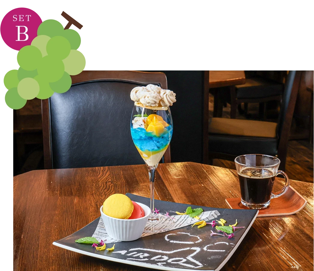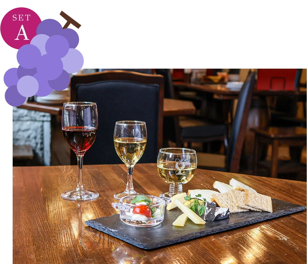 - Aセットにはアルコール(ワイン)が含まれています。未成年のお客様にはアルコールのご提供はできませんので、ソフトドリンクに変更してご提供いたします。