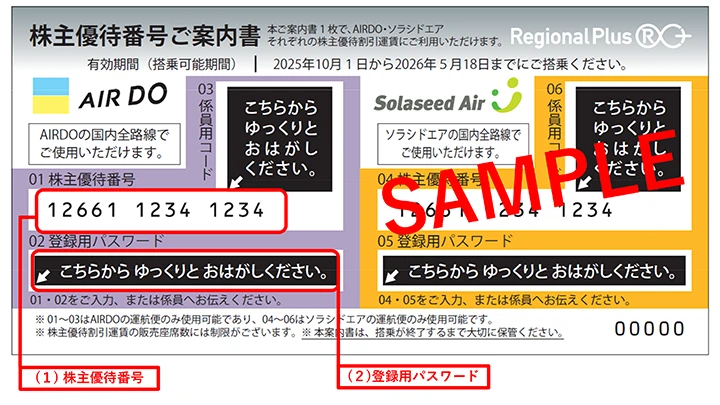 *空港カウンター、および旅行会社で購入される場合は、購入と同時に株主優待番号と登録用パスワードが必要です。