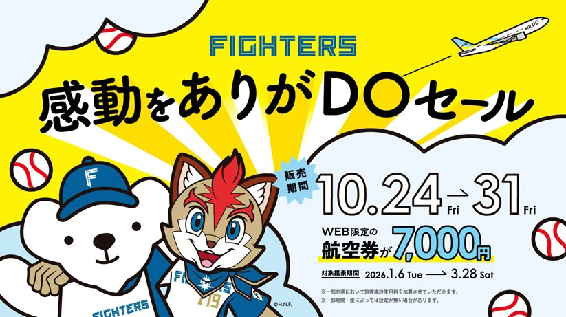 株式会社AIRDO(以下:エア・ドゥ)は、「2025 パーソル クライマックスシリーズ パ」ならびに今シーズンの北海道日本ハムファイターズの激闘を称え、2025年10月24日(金)0:00よりセール運賃「DOセール」を販売します。