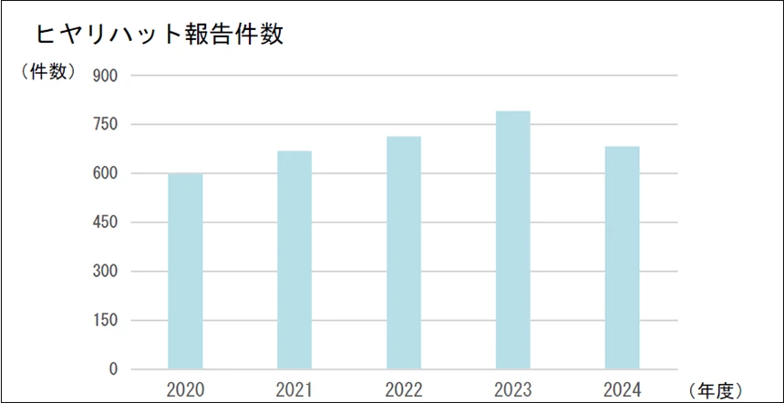 その他報告は12件ありました。飛行上の重量と重心位置の不一致を含め、事実と異なる内容によって出発前の確認を行った事態が5件ありました。機体の部品交換・点検実施期日の超過について、昨年度は5件ありましたが、2024年度は0件でした。