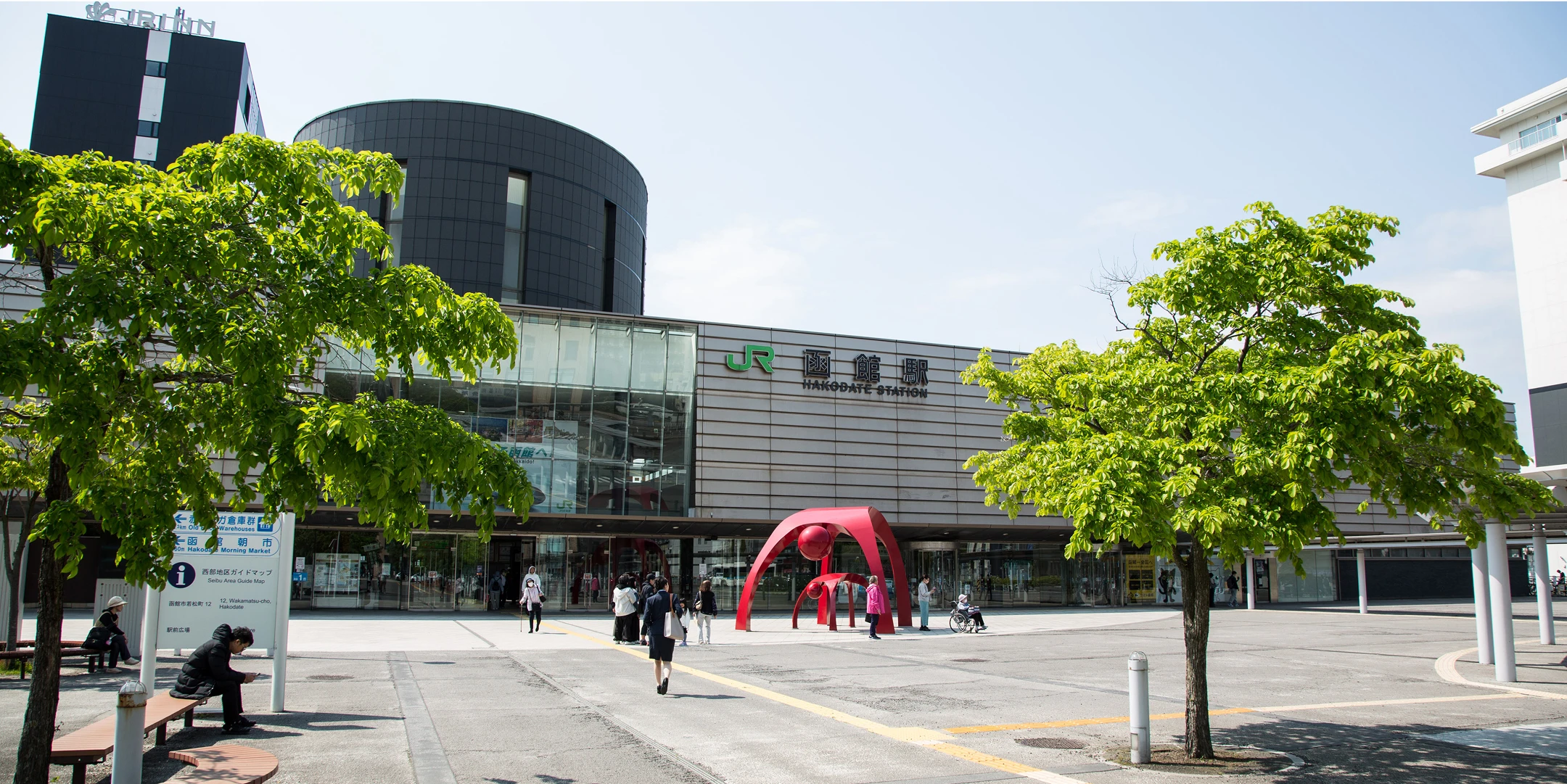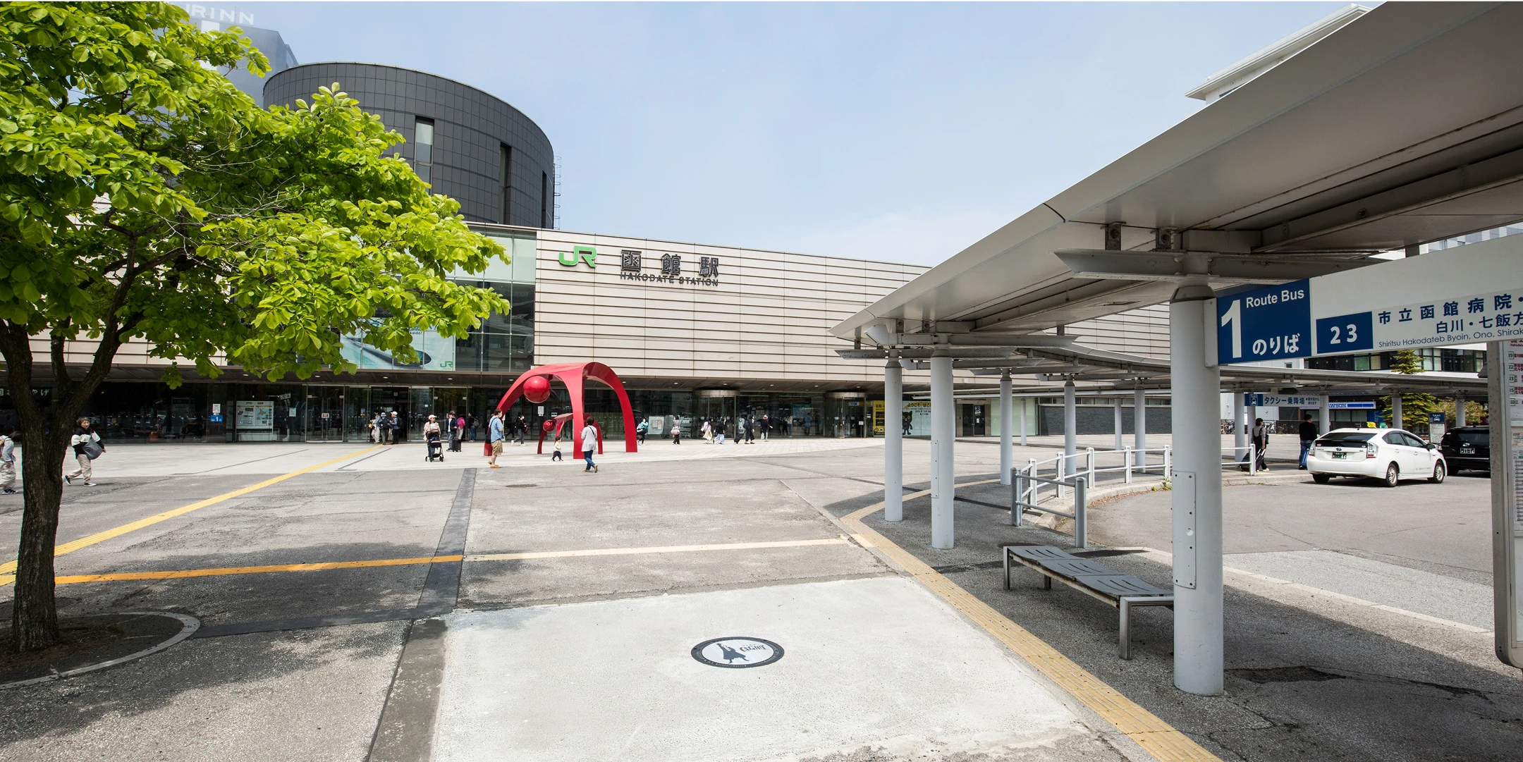 設置場所はJR函館駅中央口の赤い人型モニュメント付近で、駅前バスターミナルの1番のりばを目印にすると、探しやすいかも。
