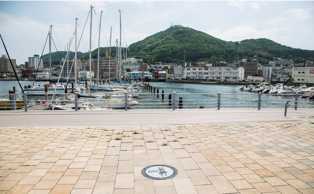 「TAKURO」マンホールが設置されているのは、島の南東角にある時計台広場のヨットハーバー近く。それほど広くないので、きっとすぐ見つけられるはずです。