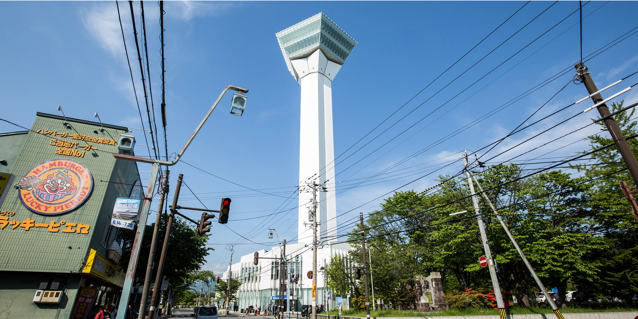 メンバー4人の個人デザインはここまで。気になる集合デザインも探しに行きましょう。集合デザインのマンホールがあるのは、こちらも観光名所として名高い五稜郭タワーのすぐ前。