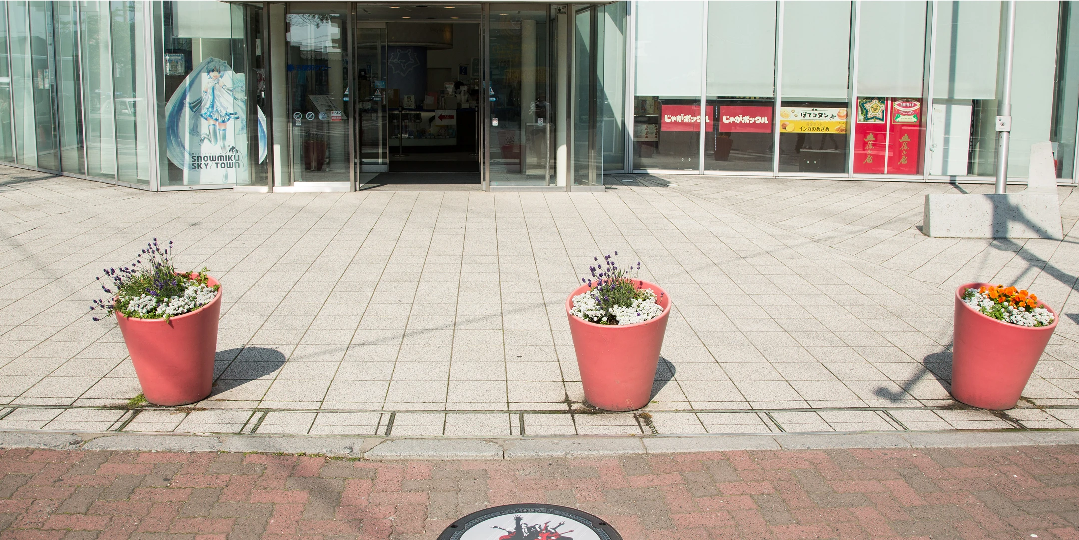 五稜郭タワー正面入口前の歩道に、メンバー4人の集合デザインマンホールが設置されています。ここも分かりやすいので、すぐに見つけられるはず。ただ人通りが多いので、撮影や鑑賞の際は、通行人の邪魔にならないよう注意しましょう。