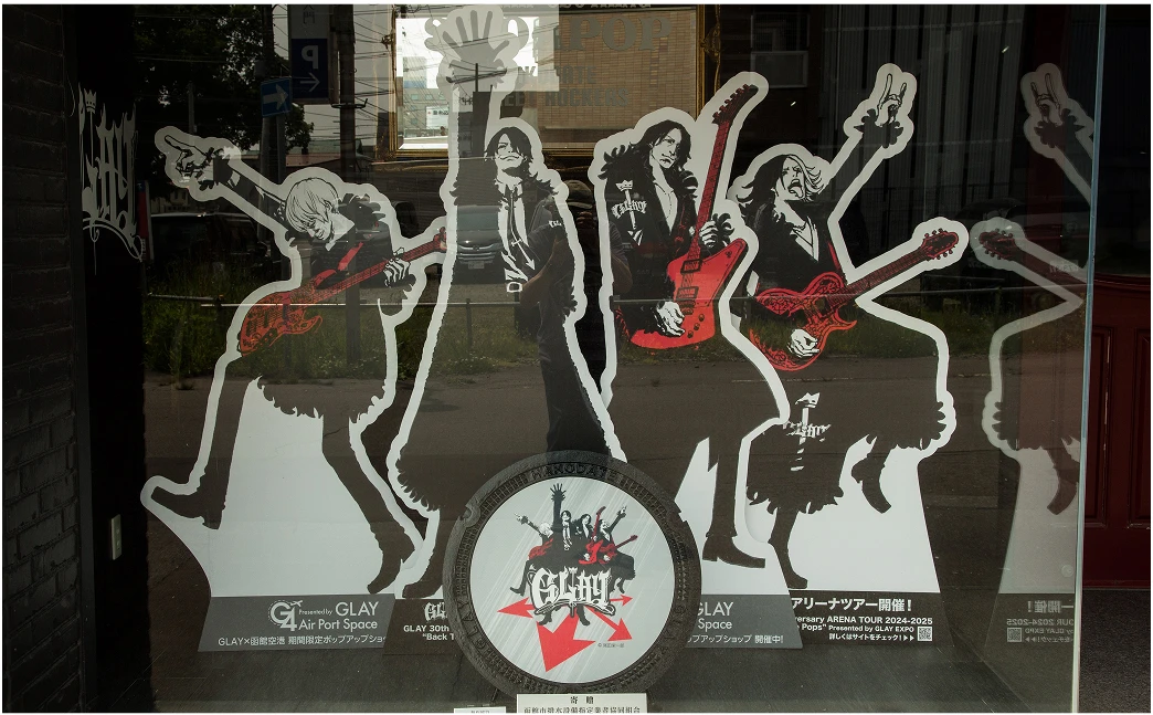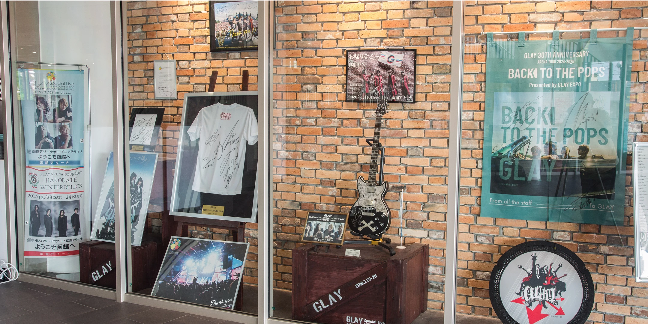 もちろん、GLAYのオフィシャルショップでありファンの聖地「G4 Space」(函館市松風町6-18)でも展示しています。ショーウィンドーに置かれているので、ショップがお休みの日でも見に行けるのがうれしいですね。