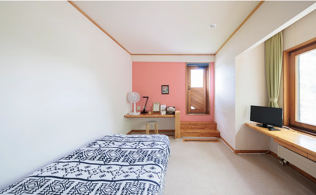 共有リビングに、4つの個室を備えた一棟貸しタイプ。