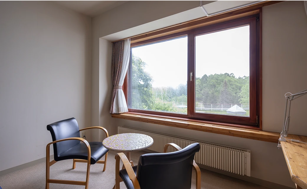 大きな窓に広がる景色を眺めながら、静寂に身をゆだねるだけで、心がほぐれていくように感じられます。