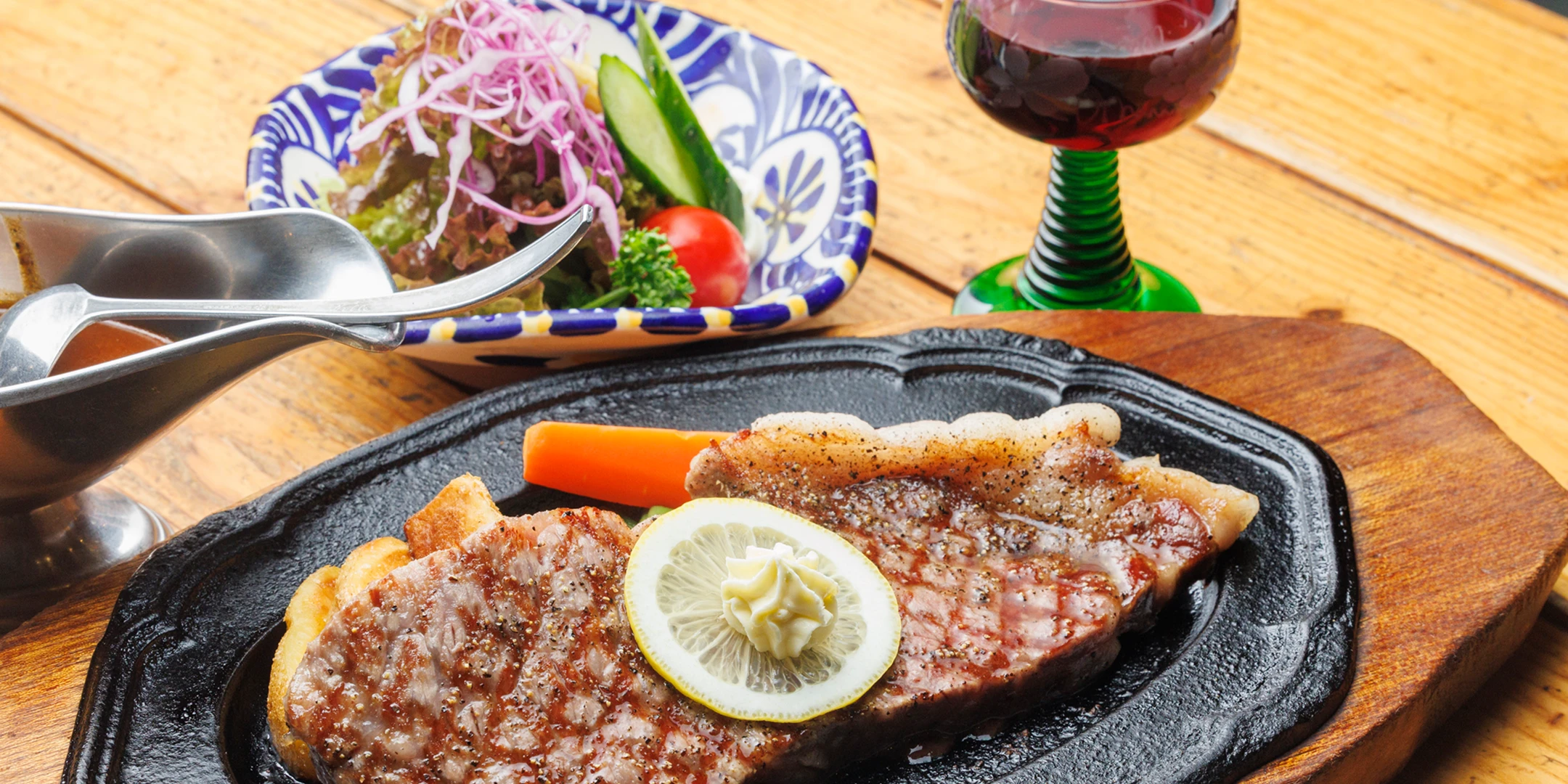 老舗洋食店「レストランよねくら」で、十勝ワインといけだ牛を心ゆくまで味わう