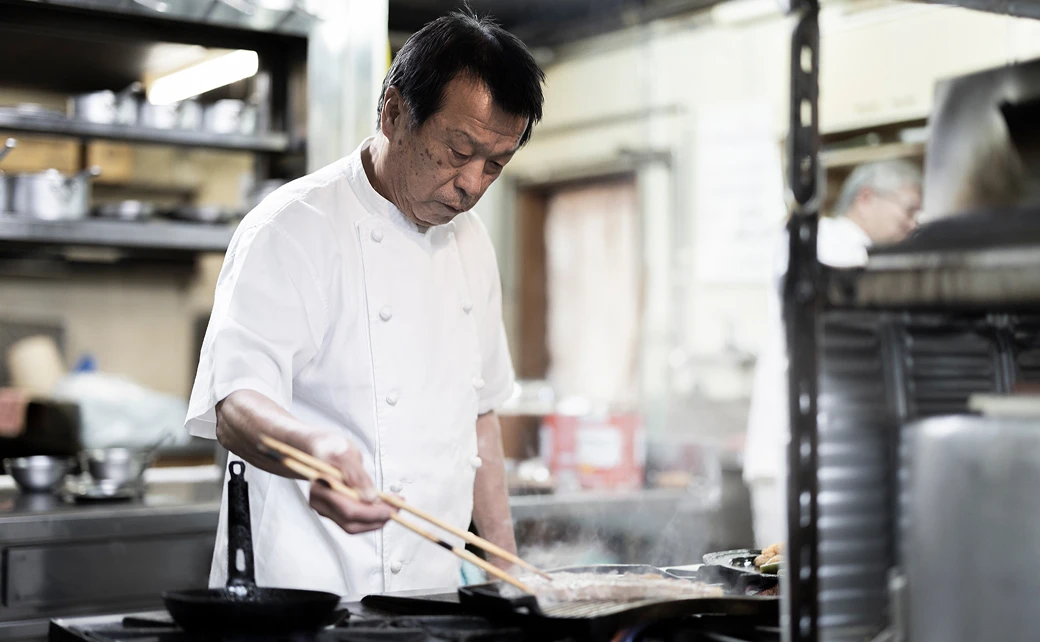 レストランよねくらは、1905年創業。もともとはJR池田駅にて名物・バナナ饅頭と駅弁の立ち売りを行なっていましたが、1976年に飲食店へ転身。