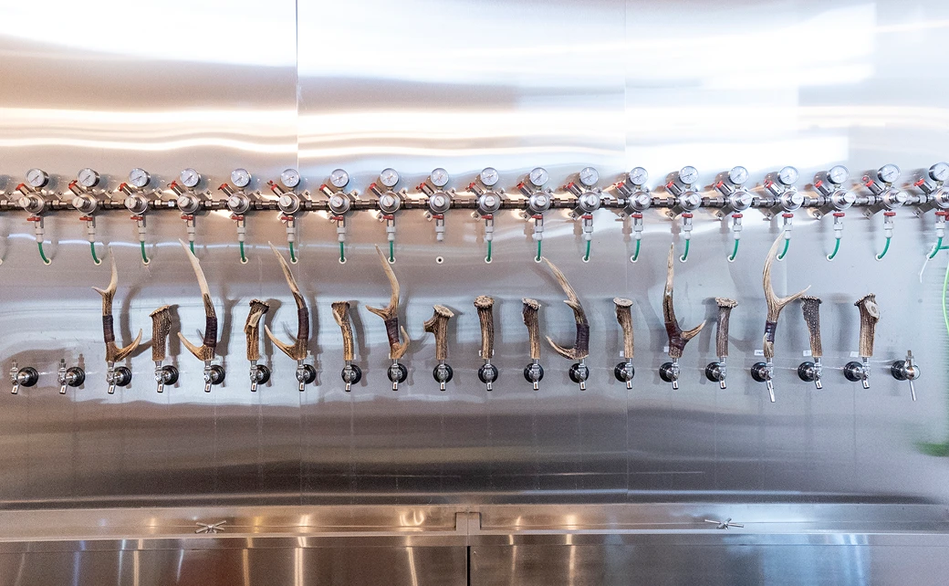 ここには最大20種類の銘柄を提供できる、北海道最大級のビールサーバーを設置。缶ビールの販売だけでなく、グラウラーによる量り売り(32oz/約960ml 1300円~)や、試飲(100ml 220円)も可能。
