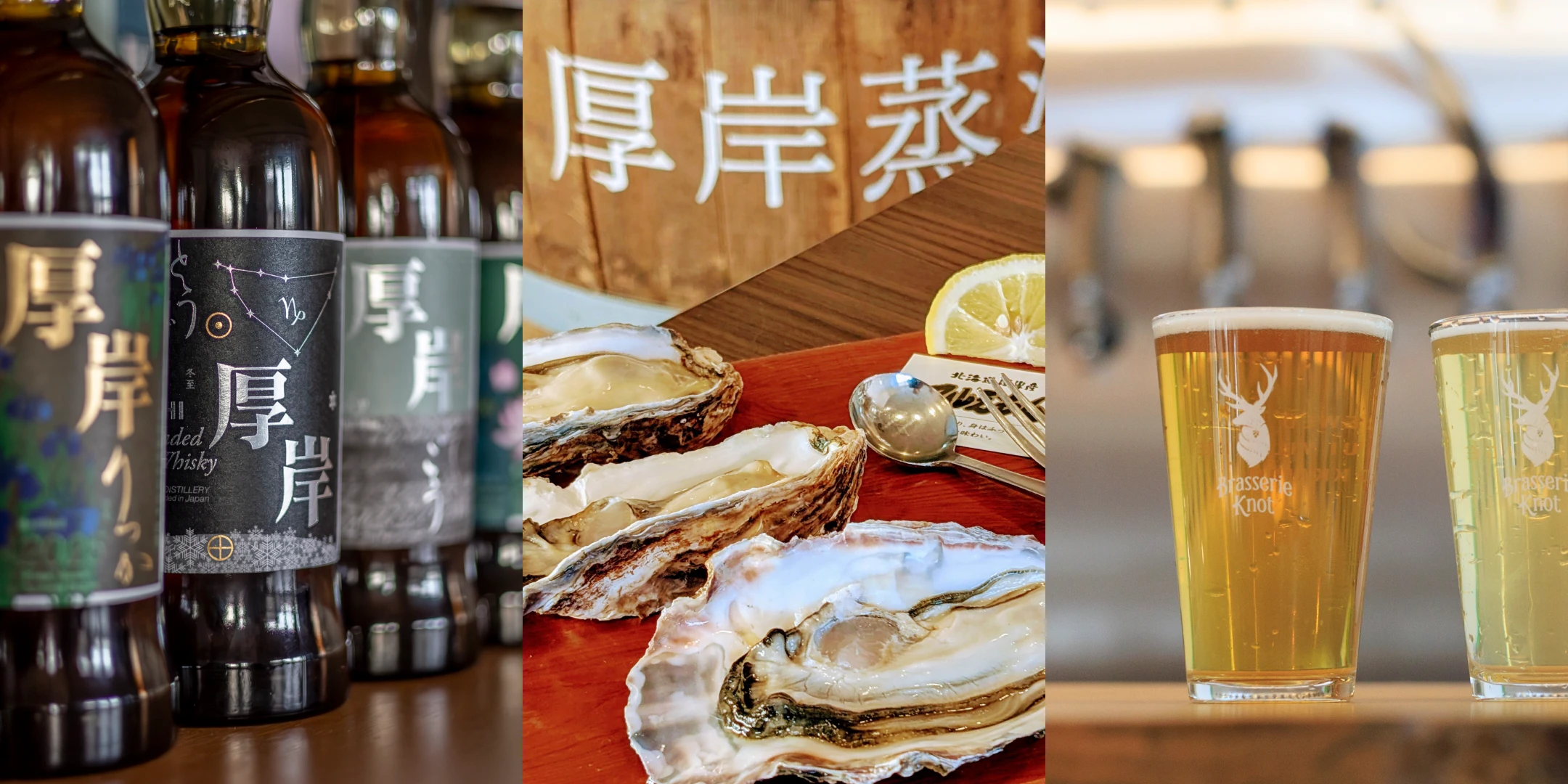 道東"乾杯"ガストロノミー旅の締めに訪れたのは、鶴居村から南東へ約70km、国内有数の牡蠣の産地・厚岸(あっけし)町にある「厚岸蒸溜所」です。