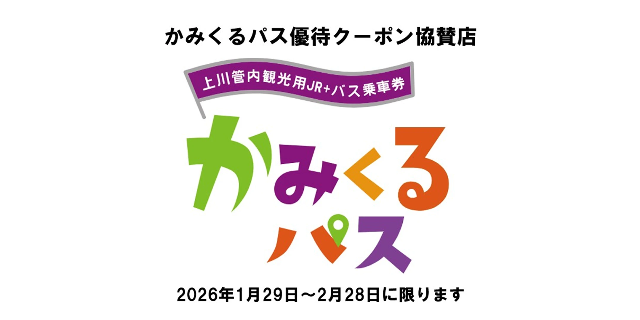 この冬、『かみくるパス』がパワーアップ! 路線バス乗り放題に加えて、JR北海道の一部路線も乗り放題になるパスを1月29日(木)から2月28日(土)まで(販売予定枚数が上限に達した時点で販売を終了します)期間限定で販売します。