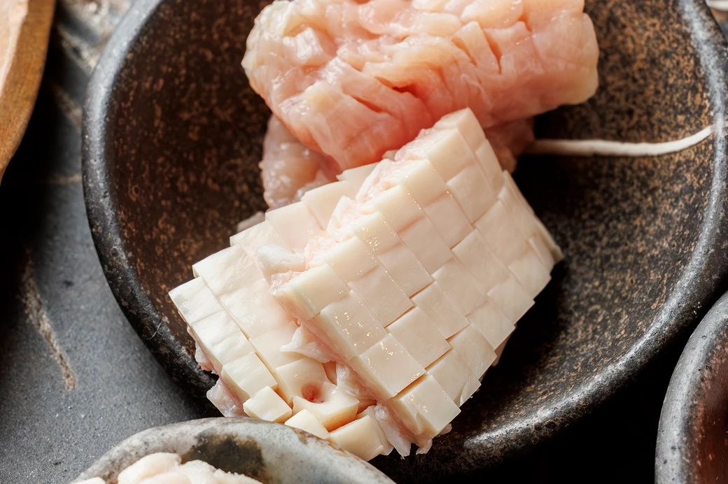 1頭から100~150g取れるうち、特に身が厚い部分だけを選りすぐった「ハツモト」も登場。ハツモトとは牛の大動脈で、豚の大動脈「たけのこ」と食べ比べてみるのも楽しいかも。