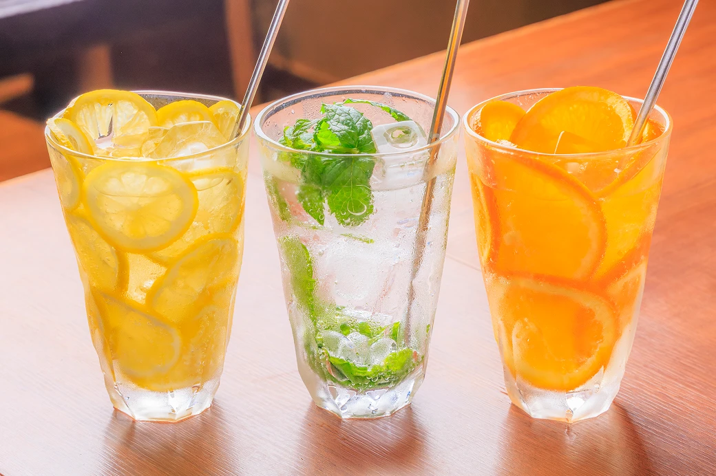 たっぷり入った果実をつぶしながら飲む「百萬力生サワー」をはじめ、ワインやウイスキーなどドリンクメニューも豊富です。