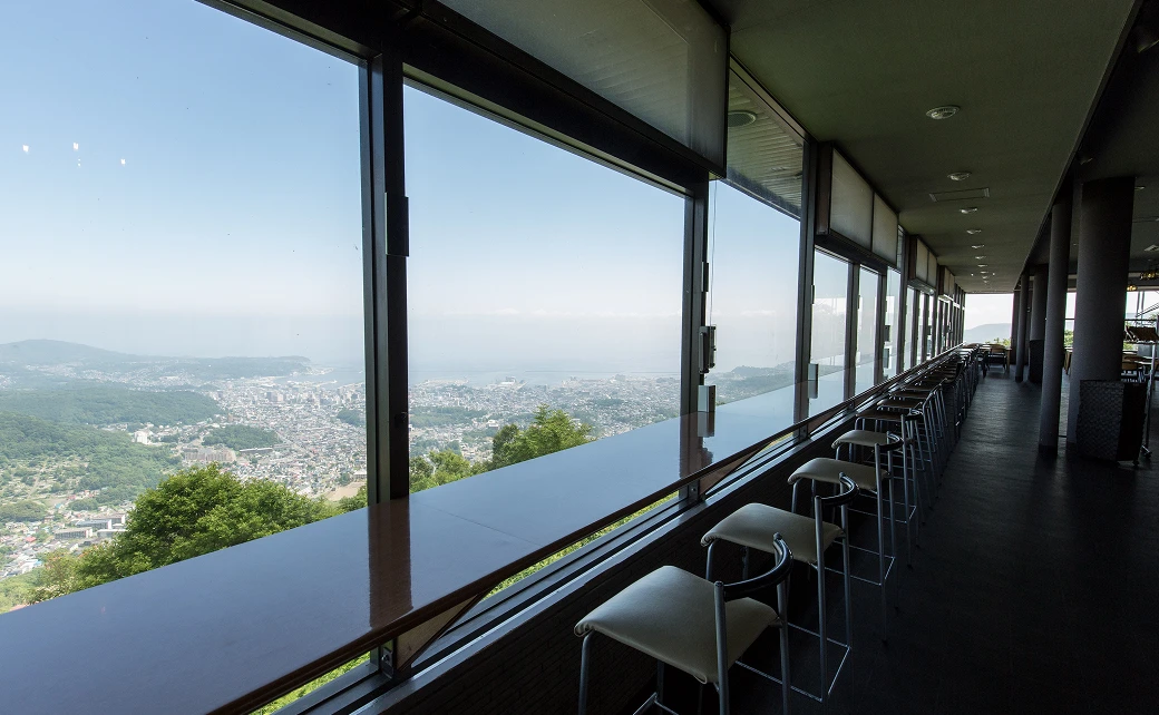 小樽天狗山は、札幌の藻岩山、函館山と並び「北海道三大夜景」と称される絶好の夜景スポットです。山頂駅舎にあるカフェでは絶景を眺めながら食事やお茶を楽しめますよ。