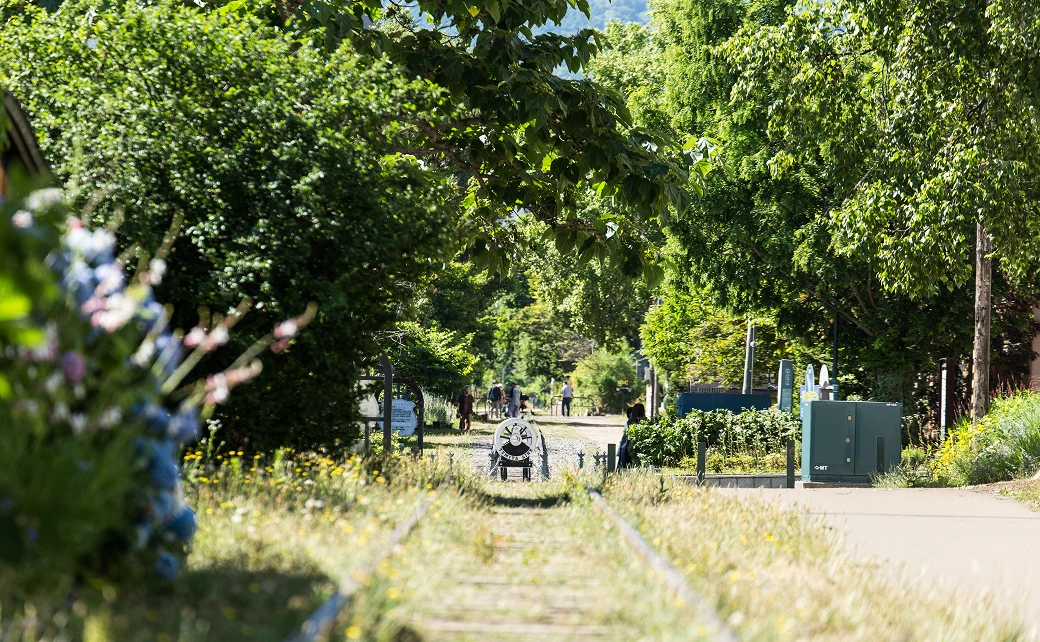 北海道初の鉄道としての歴史を感じながら、のんびり散策できるのが魅力。普段は立ち入り禁止の線路上を歩くことができ、写真撮影スポットとしても人気です。