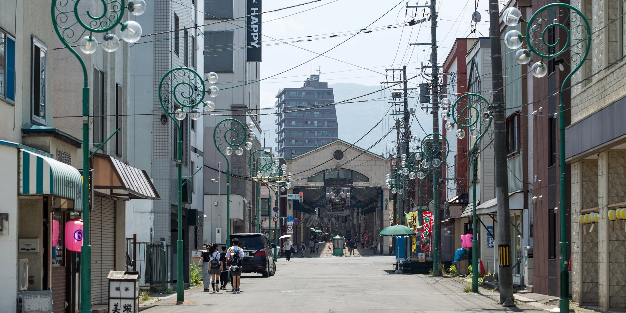 地元の人も通う、小樽駅すぐ近くの商店街です。どこか懐かしさを感じられる雰囲気で、商店街のシンボル的存在であるすずらん街灯もご注目ください。