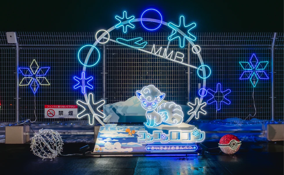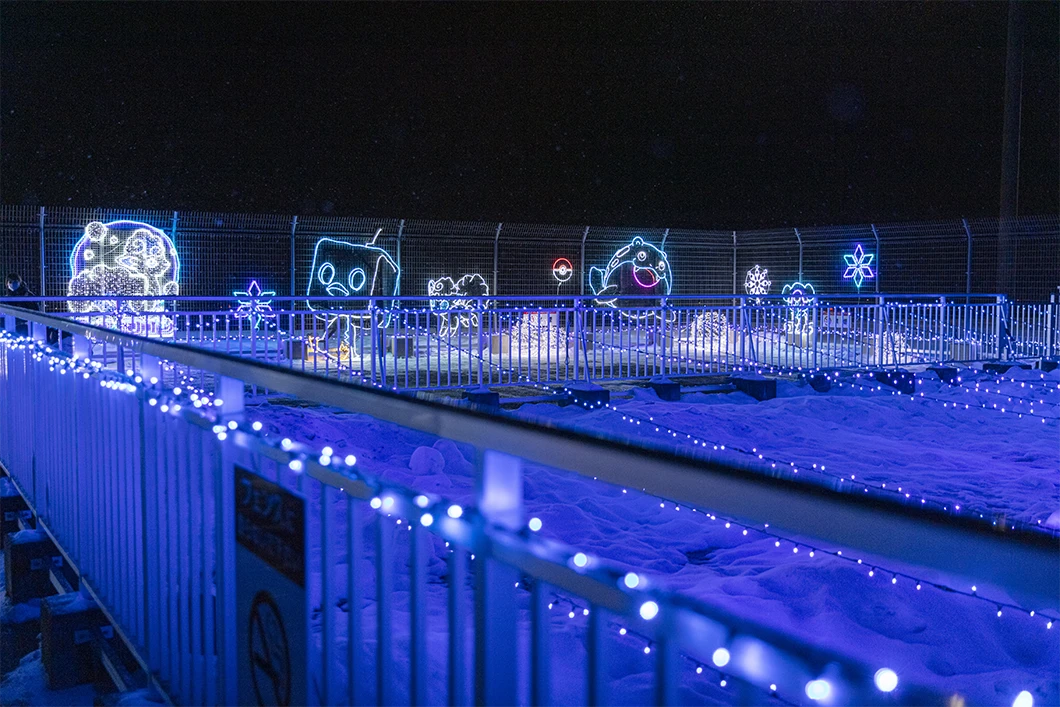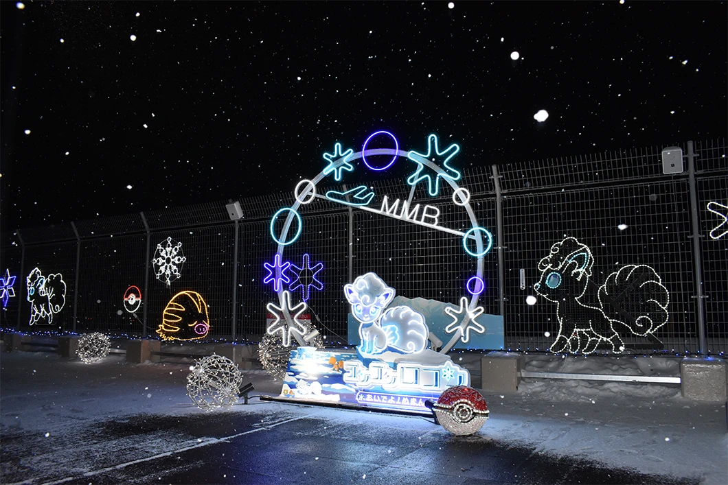 道の駅「メルヘンの丘めまんべつ」では、ロコンやアローラロコンに加え、道内のポケふたにデザインされた「こおりタイプ」のポケモンたちのイルミネーションもご覧いただけます!