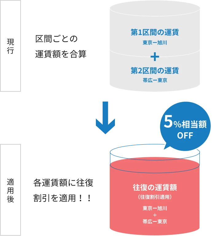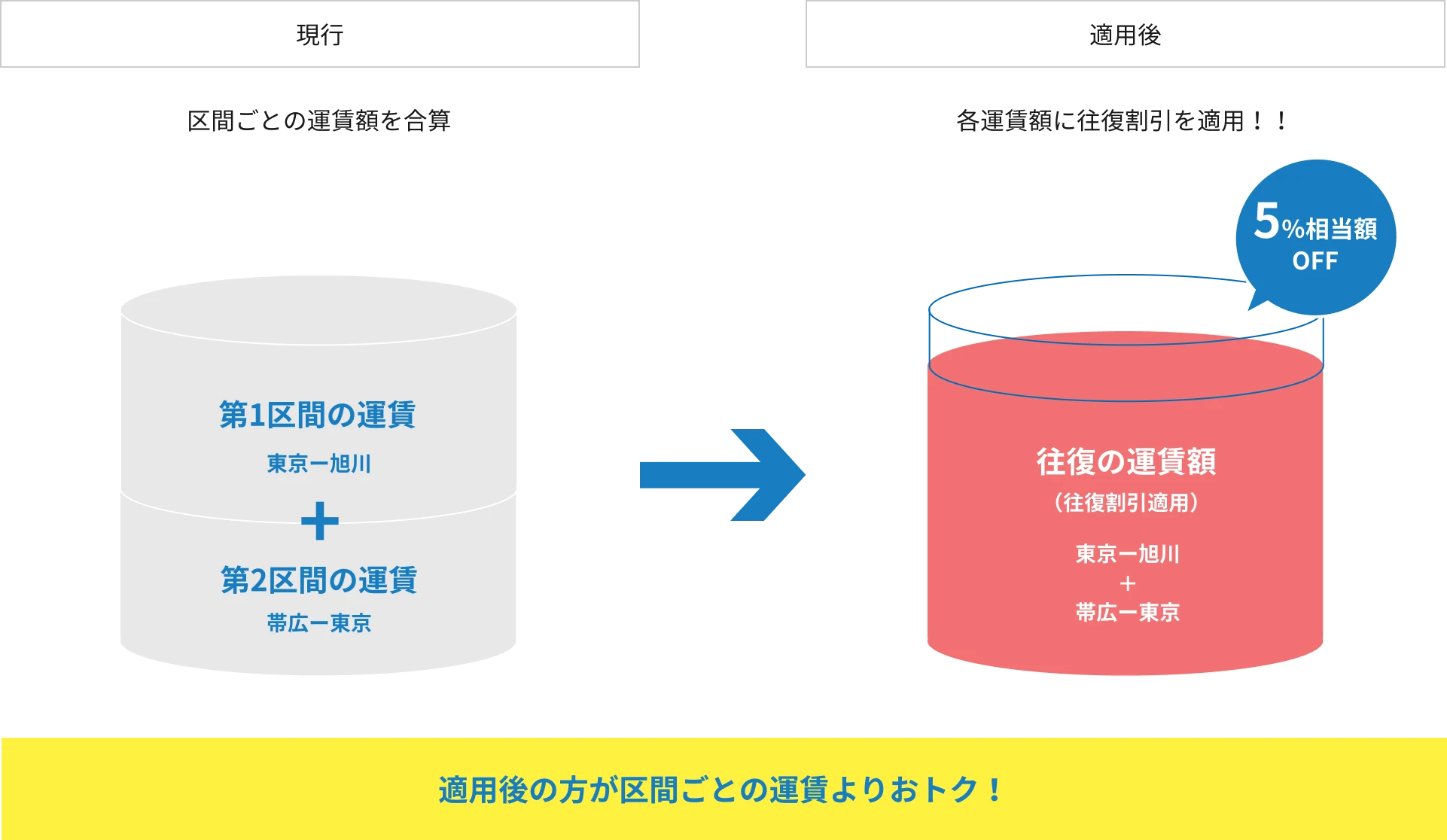 - 往復旅程を同時に予約いただくことで、往復割引が適用されます。