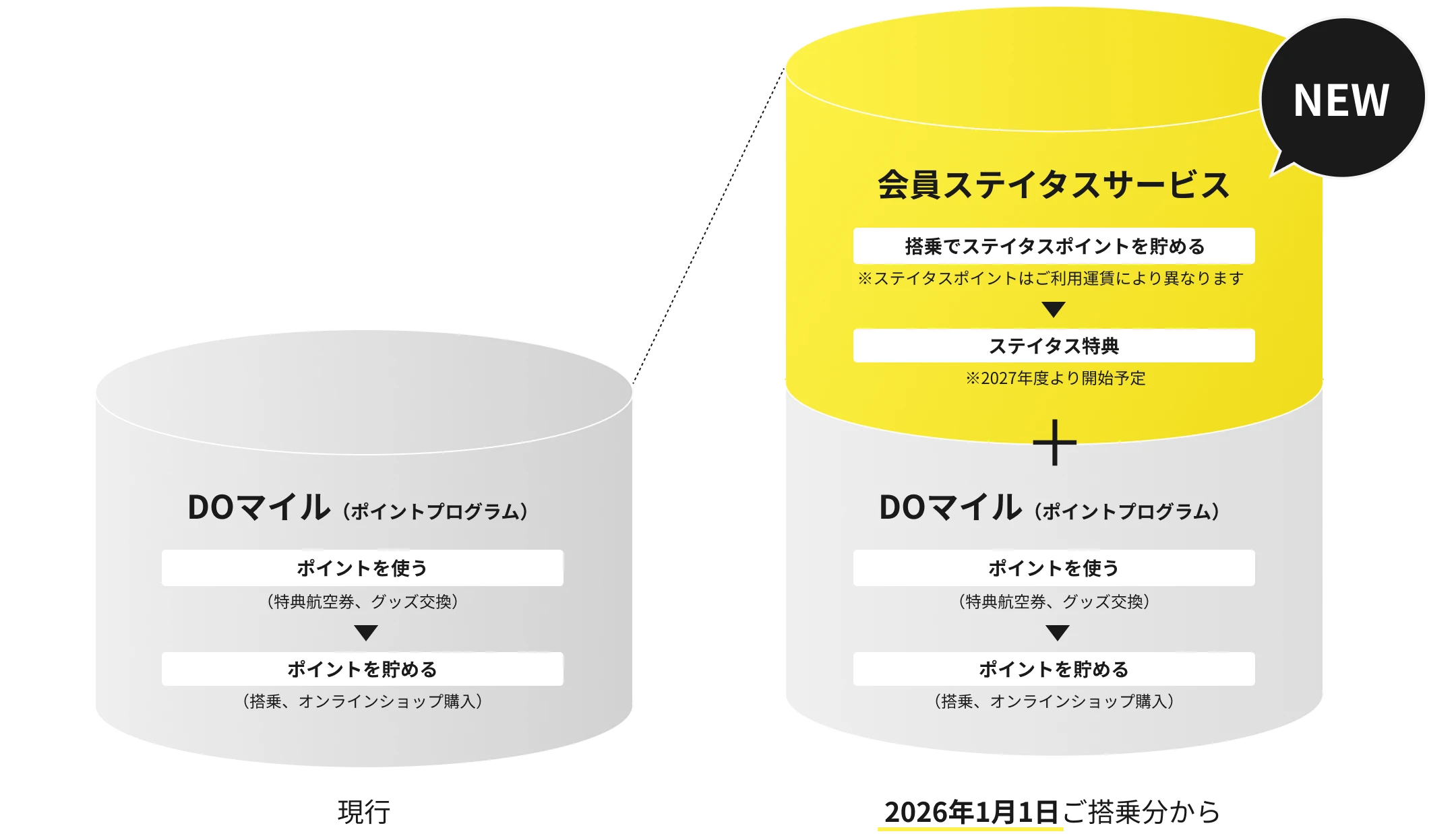 - 2026年1月1日ご搭乗から貯めていただいたステイタスポイントのマイページへの反映は2026年秋ごろを予定しております。それまではメールマガジンにてステイタスポイントをお知らせ予定です。