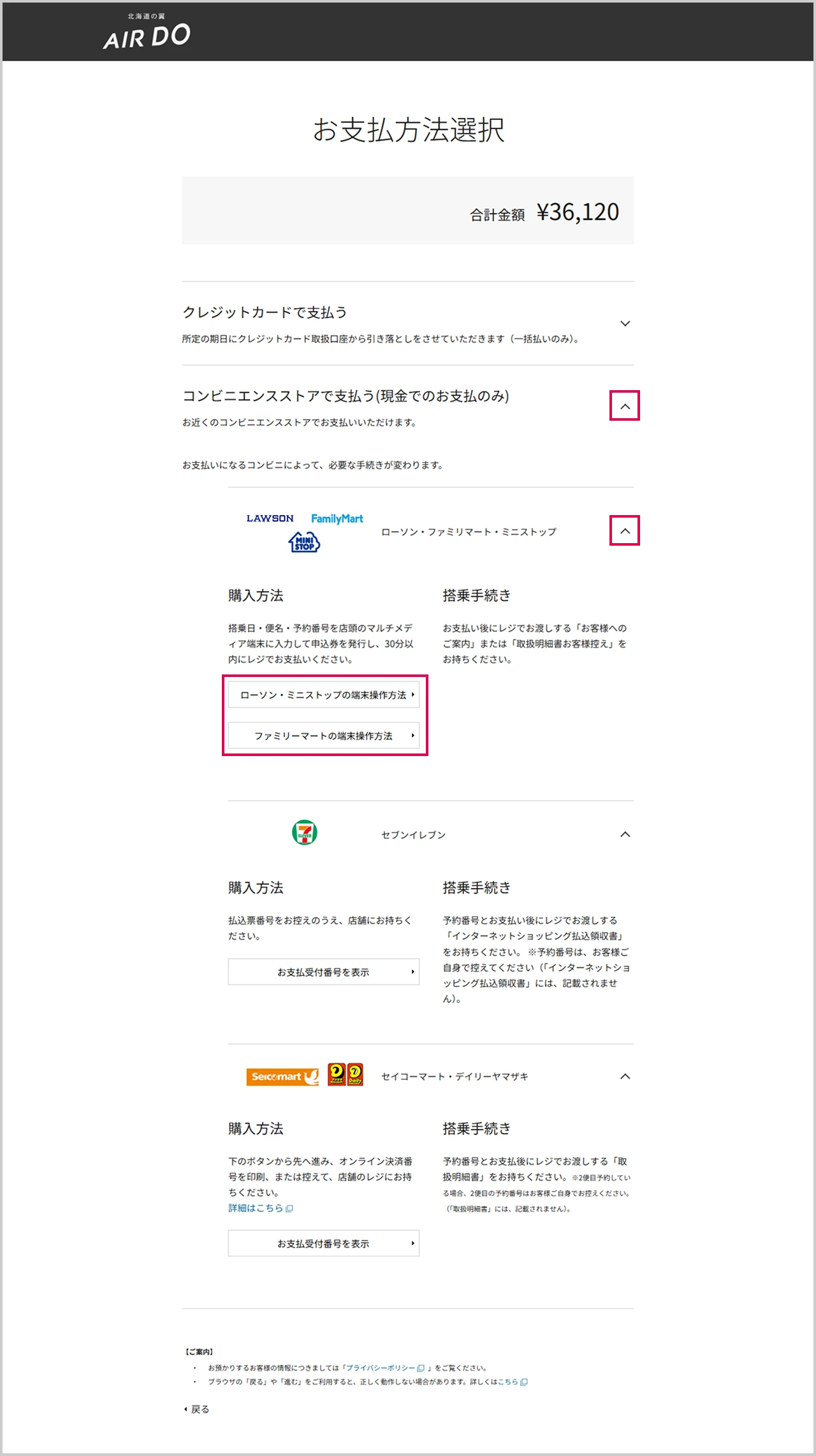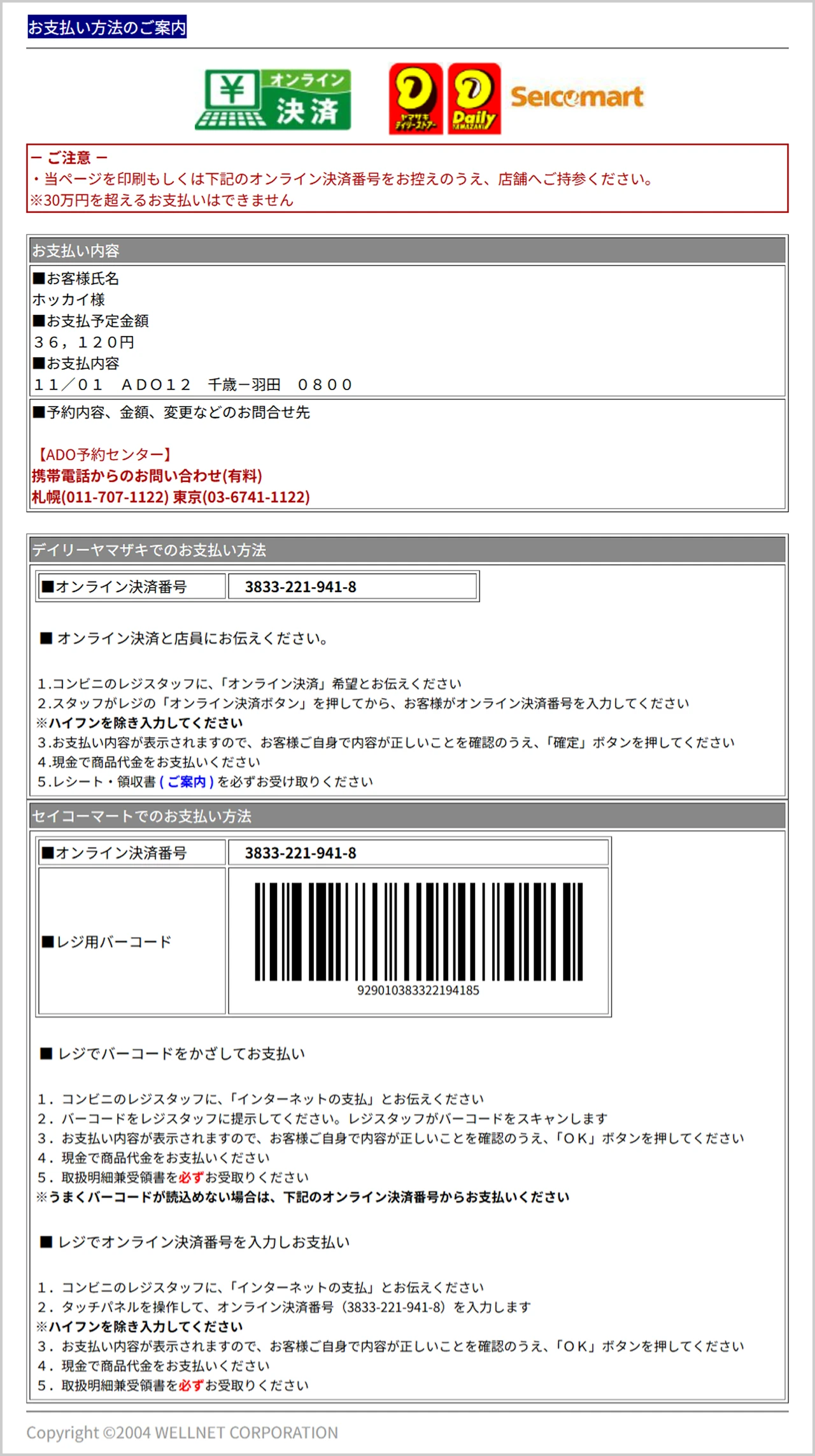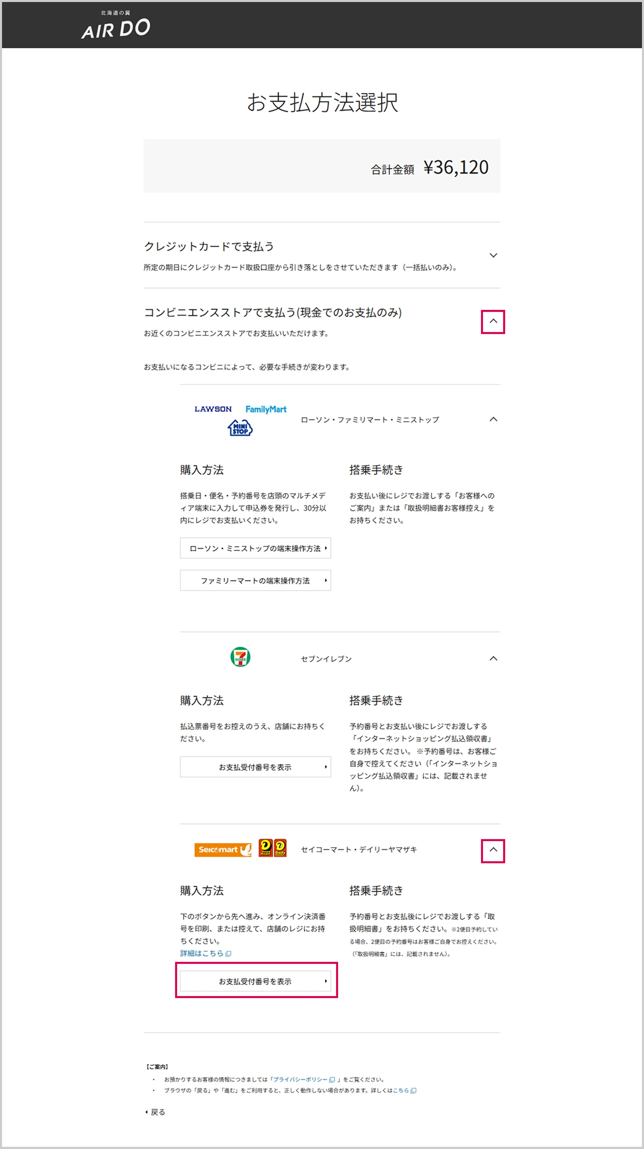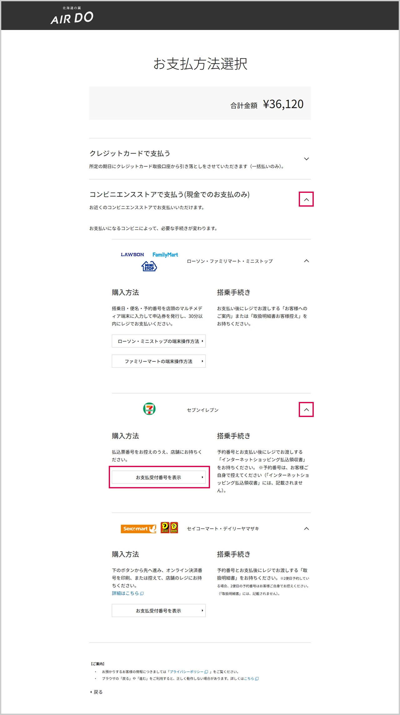 操作のヒント:コンビニエンスストアでお支払いされる場合の手順