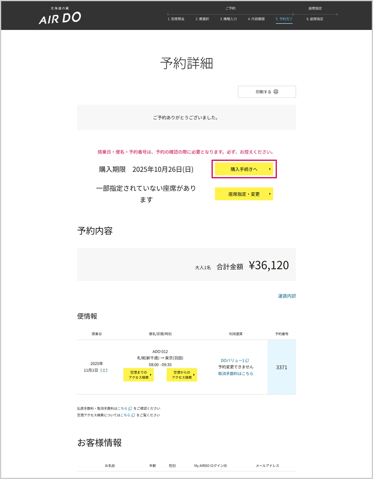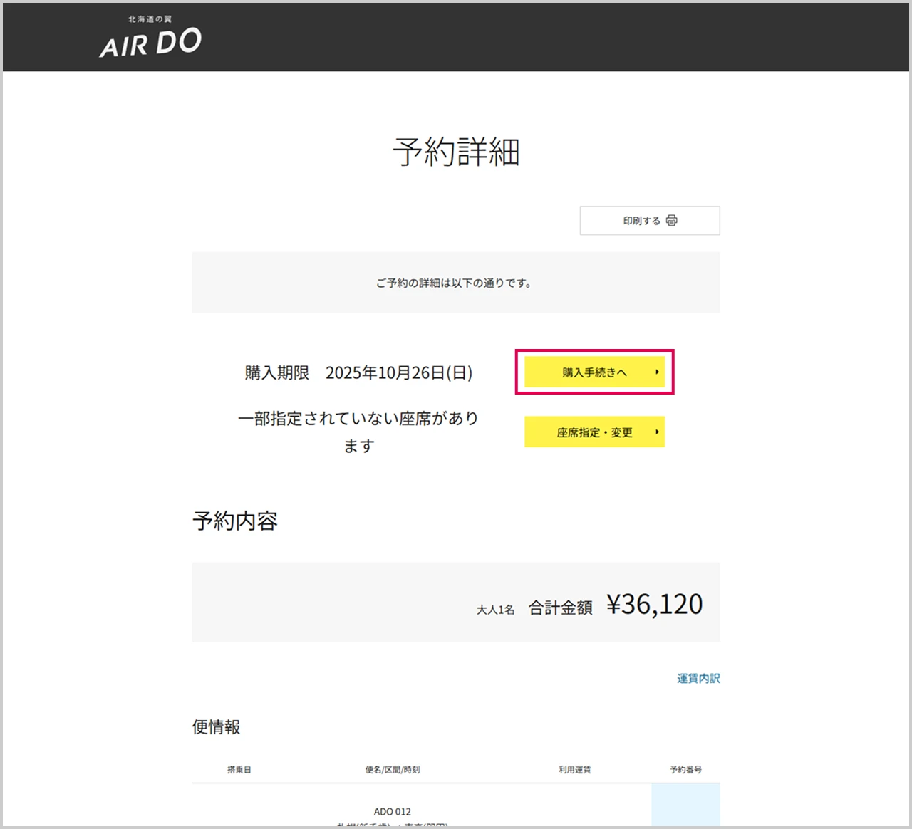 予約完了後、そのまま『購入手続きへ』ボタンからクレジットカード決済が可能です。もちろん、コンビニエンスストアでの現金決済もお選びいただけます。またお好きな席をお選びいただける事前座席指定*は無料です。