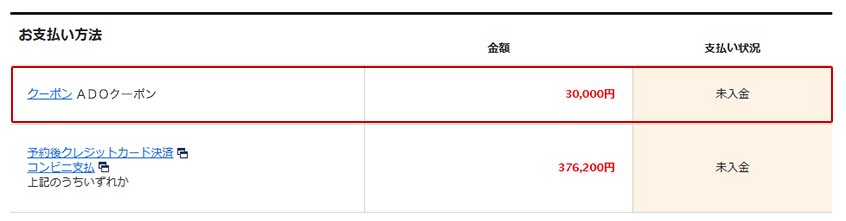 - ・予約の際に、クーポンと各種支払い手段を併用することは可能です。