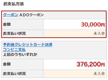 入力したクーポンが利用可能な場合、その金額分を旅行代金のお支払いにご利用いただけます。