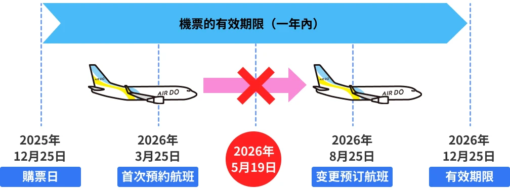 ■持有可更改訂位票價的機票,且原預約航班在2026年5月18日前之旅客,恕無法接受因旅客個人因素,將機票更改至2026年5月19日以後的航班。